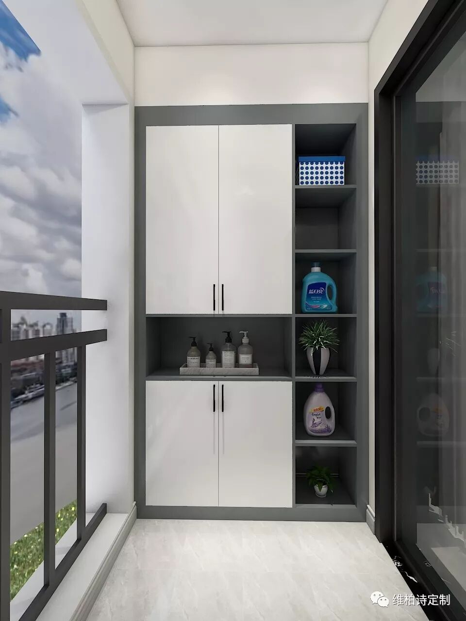 杂物东西太多,老是导致客厅里乱七八糟的。要是在阳台上装上储物柜,就有不同的效果,还可以缓解室内的空间使用率。